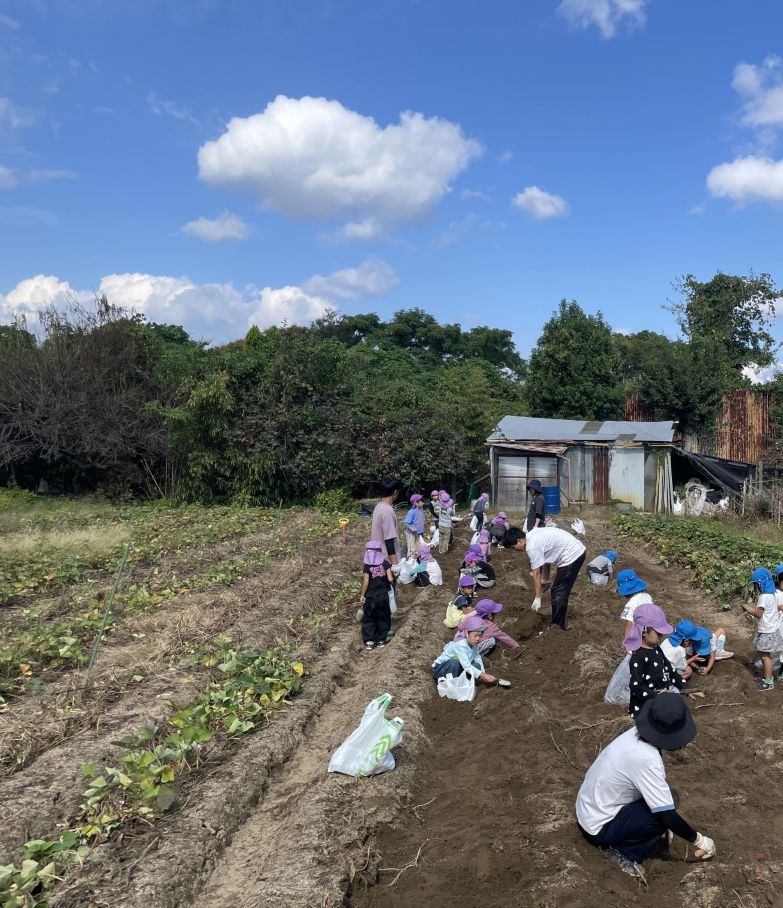 近くの農家さんの畑で、つばめ(年中)組とはくちょう(年長)組が掘ってきました!!