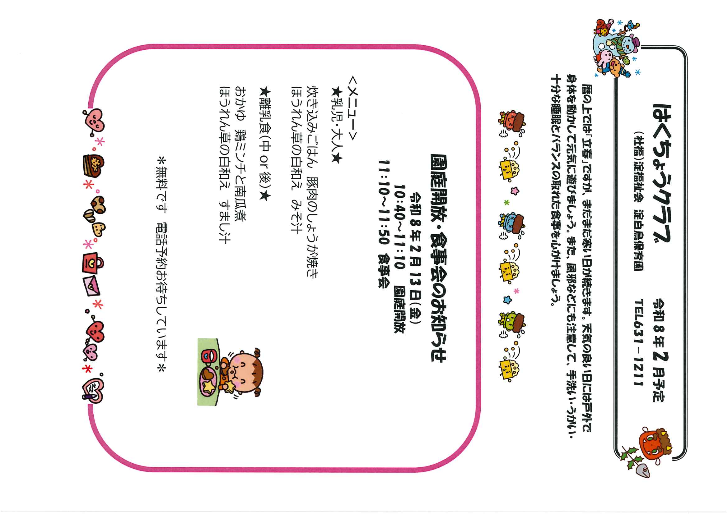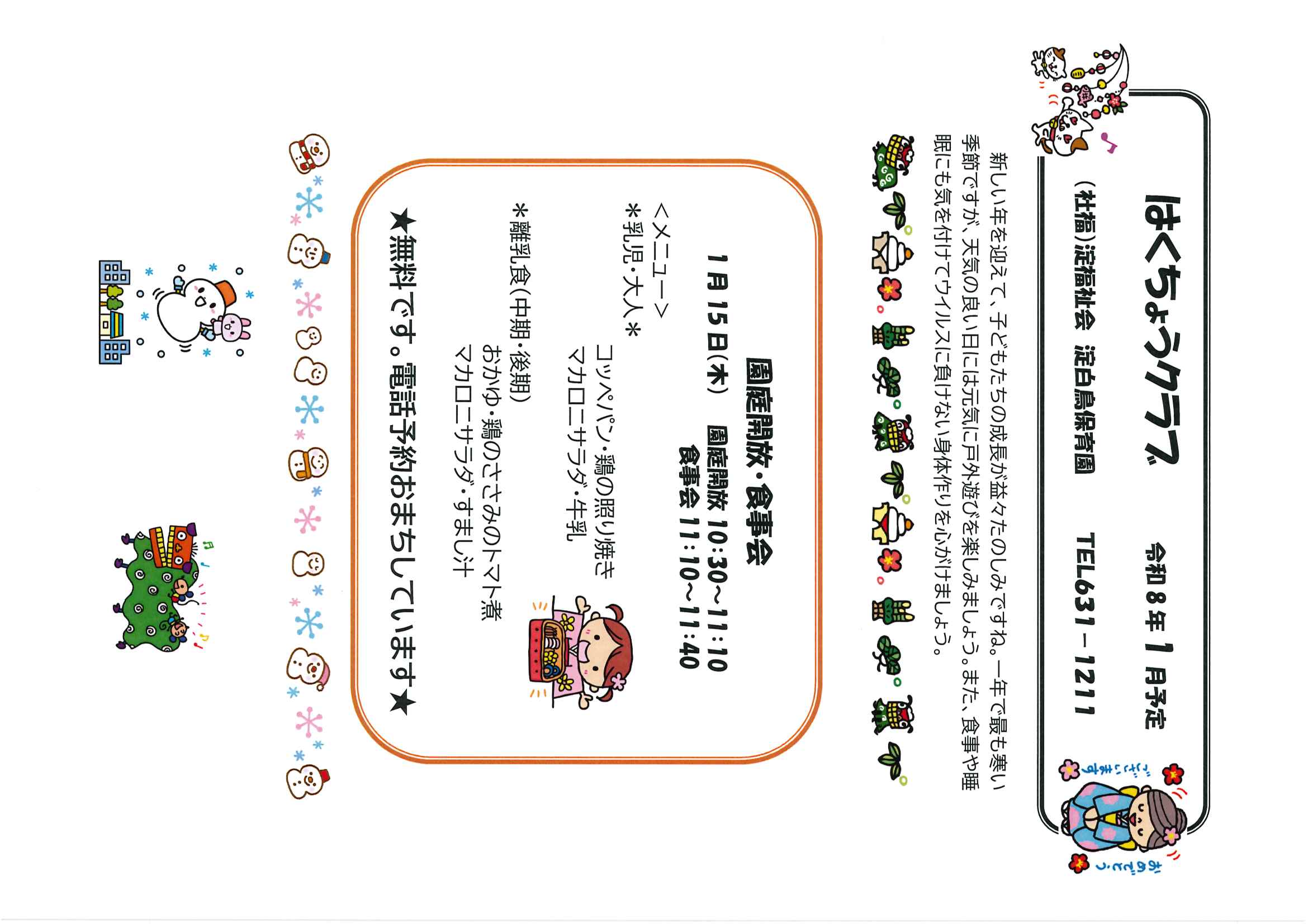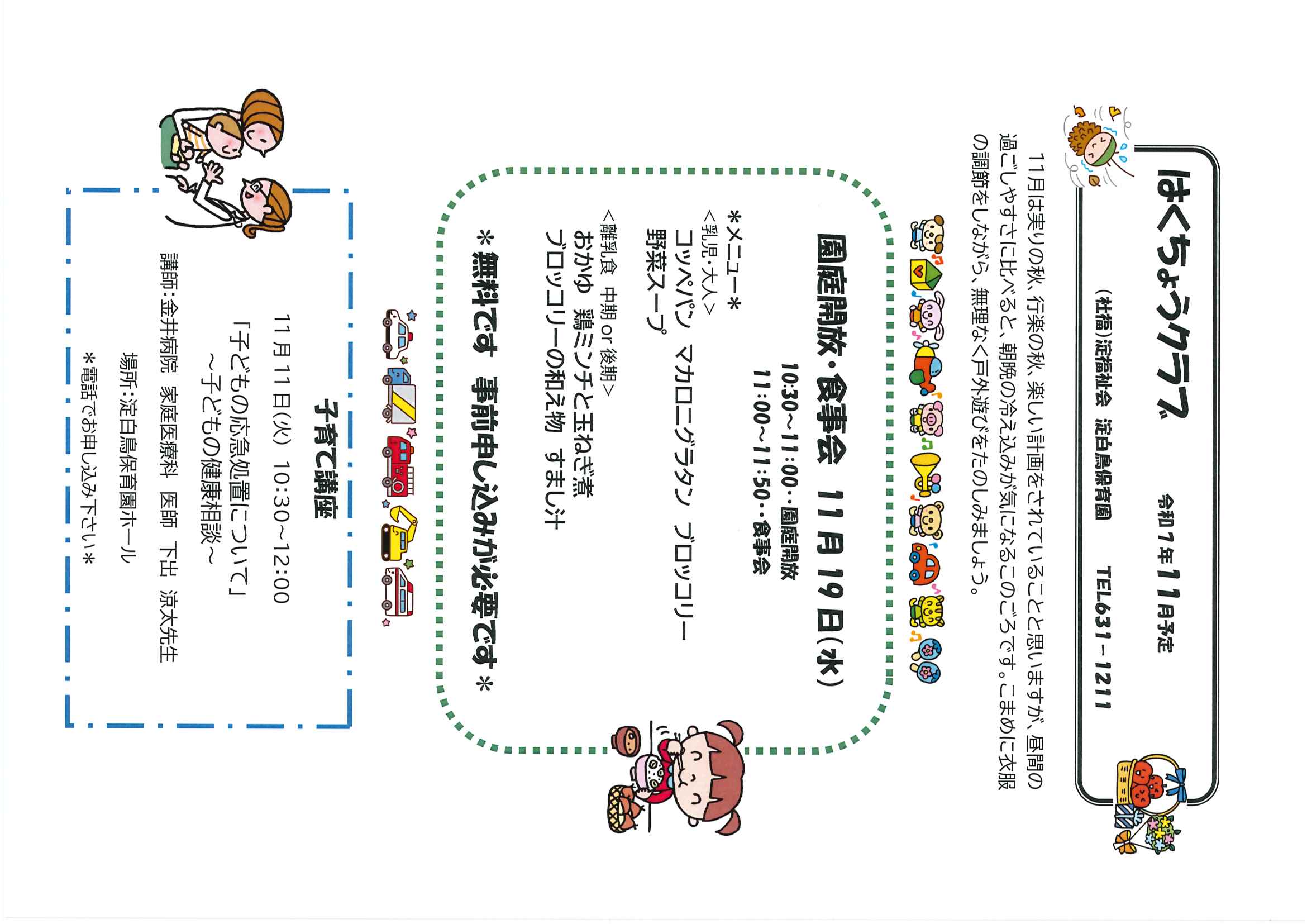 毎月「園だより」「献立」「はくちょうクラブの予定」